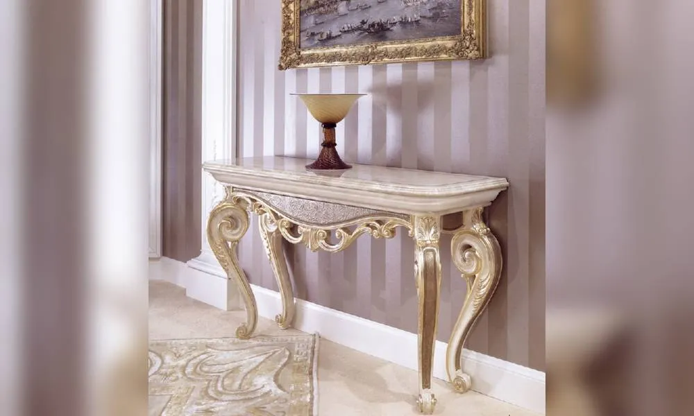 Консоль. Деревянная структура, декор ручной работы. Кожаные аппликации. Возможны другие варианты отделки.