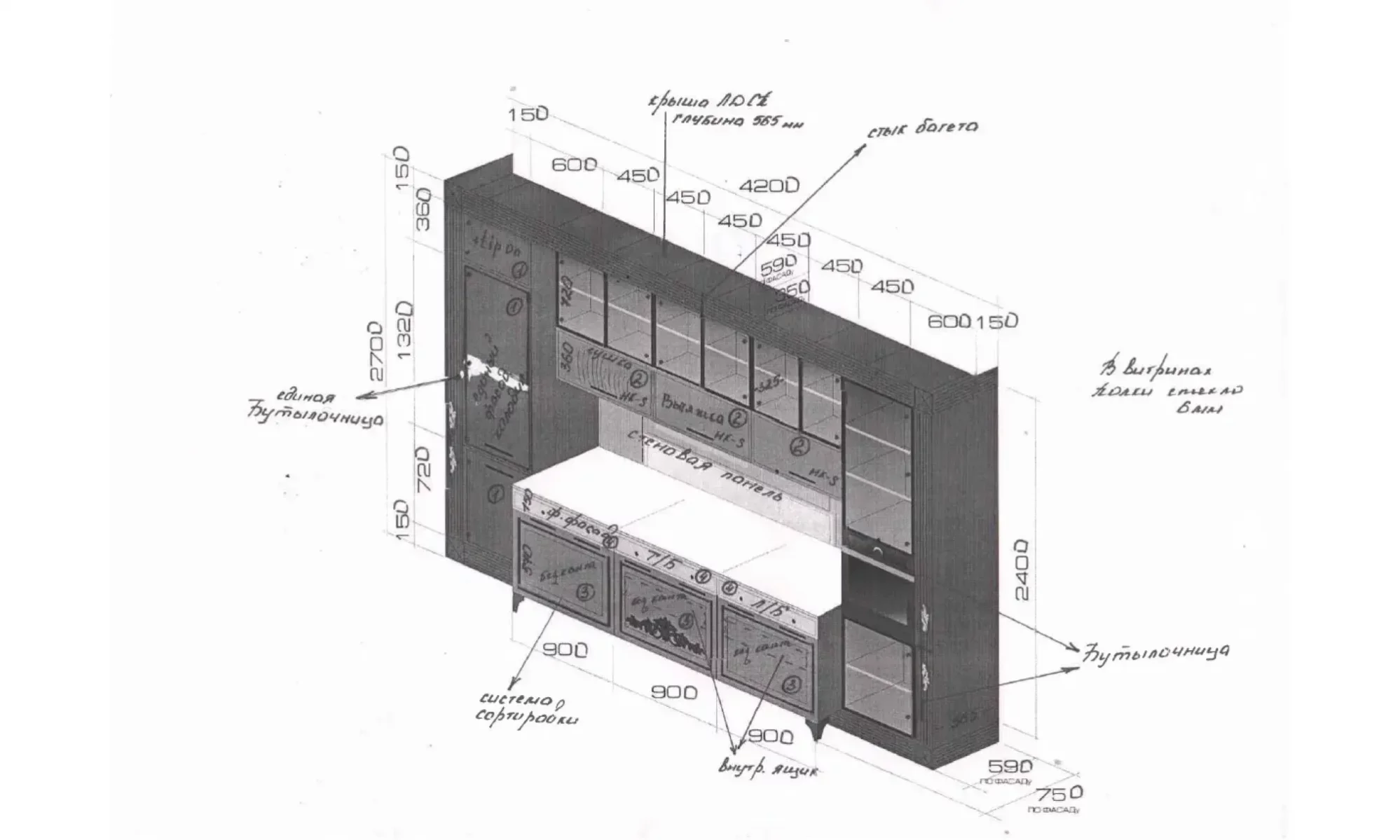 Мойка - 61,5x51x19, шкаф под холодильник - 60x62x175
