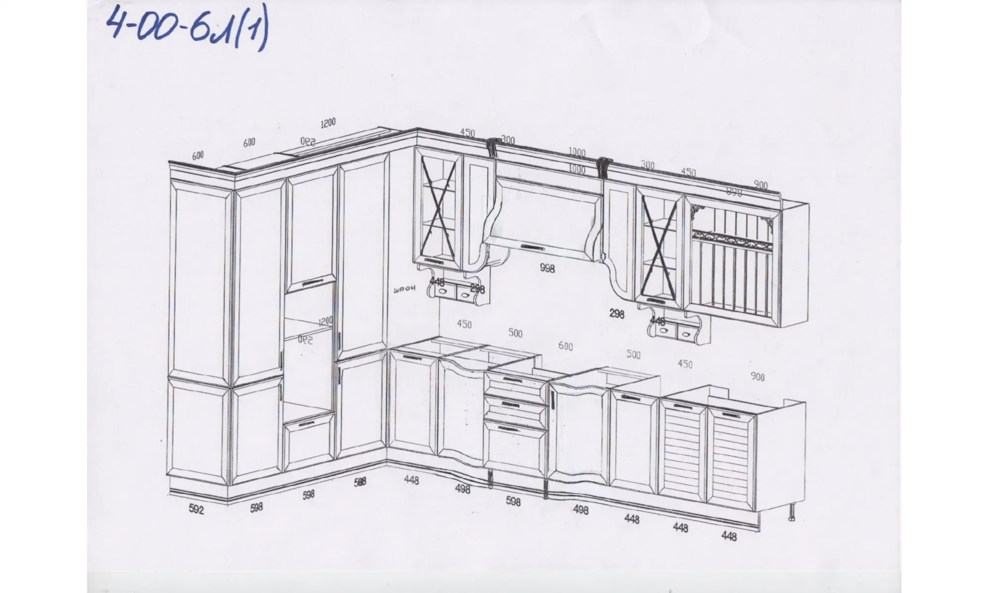 Мойка - 40x40x22, шкаф под посудомойку - 45x56x72, шкаф под холодильник - 60x60x219, ниша под свч - 60x50x39