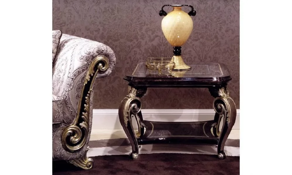 Приставной столик. Деревянная структура, декор ручной работы. Вставка из стекла на столешнице. Возможны другие варианты отделки.