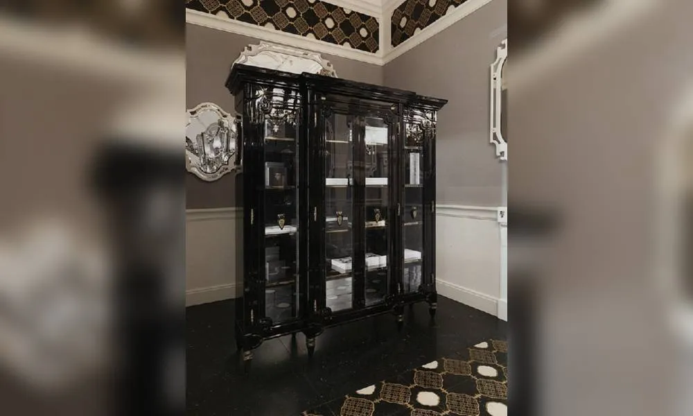 Витрина с 4 распашными стеклянными дверцами. Внутренняя подсветка включена в стоимость. Возможны другие варианты отделки.