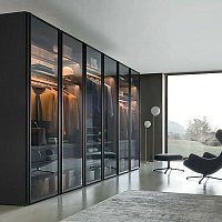 Здесь все трендовые отделки и опции - стекла, подсветки, металл, шпон, керамика. Модные конструкции любой сложности, которые позволят создать универсальную гардеробную или перегородку для зонирования помещения.